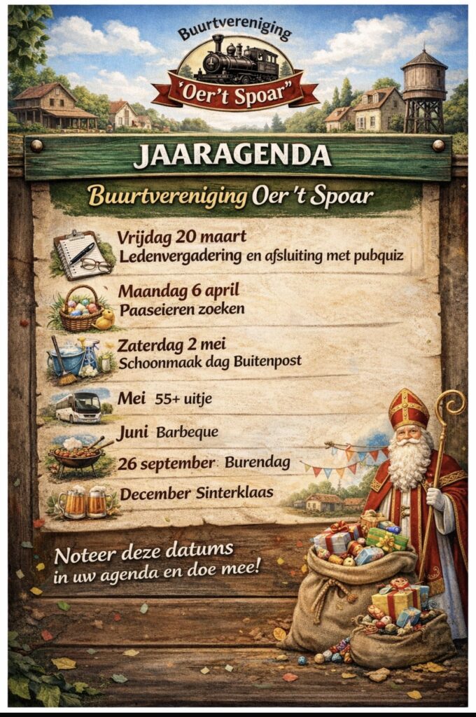 Op woensdagmiddag 21 mei staat het jaarlijkse 55+ uitje gepland. Dit jaar gaan we naar houtstad IJlst voor een gezellige middag. We bezoeken onder andere de houtzaagmolen en het museum, beide onder begeleiding van een gids. Uiteraard is er ook tijd voor koffie/thee met gebak. De kosten bedragen €10 per persoon. Aanmelden kan via de buurtmail: oertspoar@gmail.com. Meer informatie volgt later.